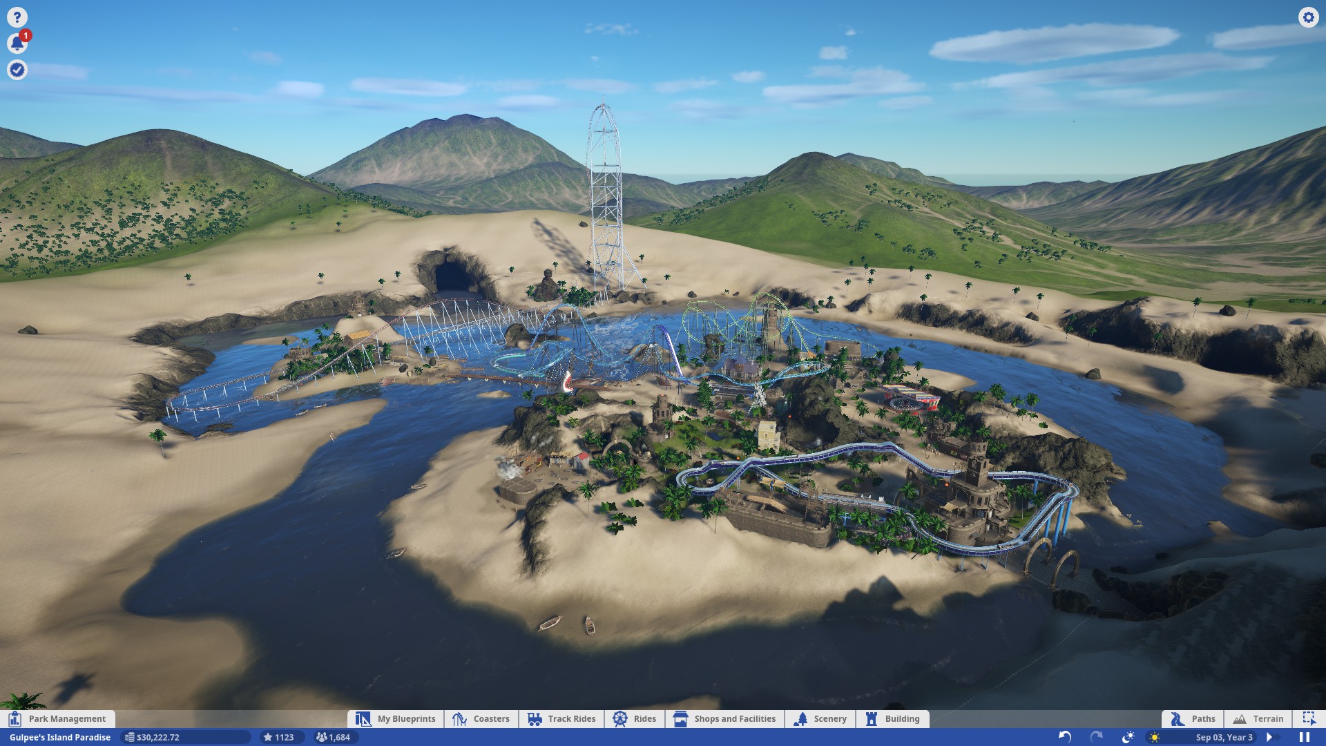 Build coasters lay paths design scenery and customize rides.